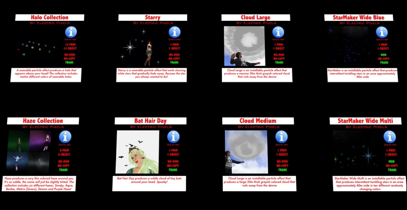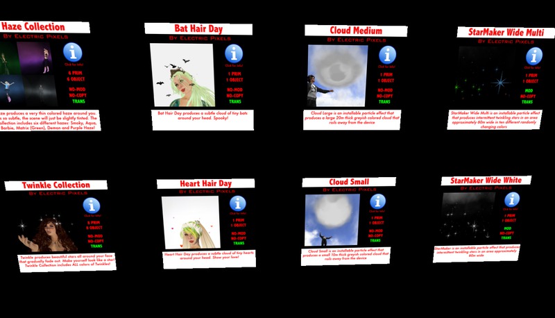 Electric Pixels produces some of Second Life's Most Amazing Particle effects. Our products include items you can wear and also items you can install in your home, land or business.