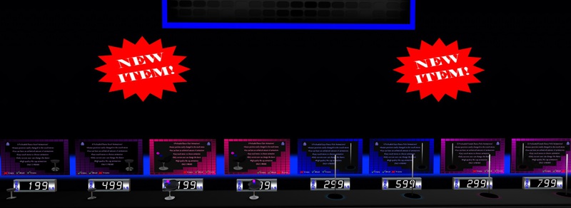 We sell tip jars, dj booths, picture profile displays, male dance animations, female dance animations, unisex dance animations, bars, dance floors dances cages, contest boards, profile picture tip jars, scripts, couches, chairs, tables, club furniture, DJ gear & much much more.