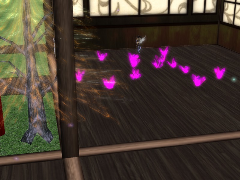 A variety of animations can be seen while the Yumi is moving around inworld such as pointing at things, spinning and thinking. In addition, you will hear the sounds made by the Yumi as they flutter their wings and look around in your dimension. You can click and hold your mouse button without releasing for about 2 seconds or more on the Yumi to pull up an interaction menu. If you are carrying the Yumi on your shoulder they may reach over and give you a hug or even fall asleep!